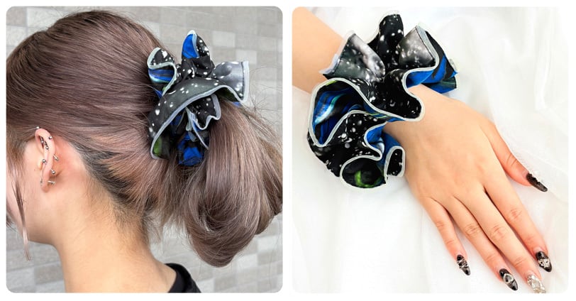 1枚の布から広がる、無数のかたち 〜One Cloth, Many Uses.〜 アートをまとう楽しさ 〜The delight of wearing art.〜 ・カラフルな色、風を纏うような透け感のある素材で、使い方の幅が広がるスカーフ。 ・72cmのやや大盤サイズは使いやすく、洗濯機洗いができる日常使いファッションアイテム。 オシャレ使いにも、冷房などの防寒対策にも重宝する1枚です。 ポリエステル100%のスカーフは丈夫で、身につける、持ち物に巻く、などの普段使いに向いています。 生地に少しざらつきがあるので、滑りにくく、しっかりと結べます。 それぞれ柄ごとに遊び心を詰め込んでいます。 スカーフの使い方は無限大です。 年齢を問わず、あなたらしい使い方を楽しんでください。 『 テキスタイルデザイン 』 iro.Sekai..オリジナルテキスタイル 〜textile_No.003〜 黒の水しぶき 『 サイズ 』 約72cm × 72cm 『 生地 』 ポリエステル100% シフォン さらりと肌触りの良く、程よい透け感があります シワになりにくく乾きが早いので、お洗濯が簡単 畳みじわなどには吊るした状態でスチームを軽く当てるだけでシワが伸びやすいです 長くご愛用いただける丈夫な生地です(尖った物での引っ掛かりにはお気をつけ下さい) 『 仕様 』 巻きロック仕様 『 お手入れ方法 』 洗濯機OK(オシャレ着洗い推奨) 乾燥機・漂白剤は使用不可 シワになりにくく、スチームで簡単ケア アイロンは中温以下でご使用ください 『 ご注文について 』 小ロット生産の為 在庫がない場合は「受注生産」となります ご注文からお届けまで 1〜3週間 程度かかる場合があります 納期に不安がある場合はお気軽にお問い合わせください 『 その他 』 オリジナルテキスタイルプリント 日本国内縫製にて丁寧に製作しています 不明な点などありましたらお気軽にお問い合わせください