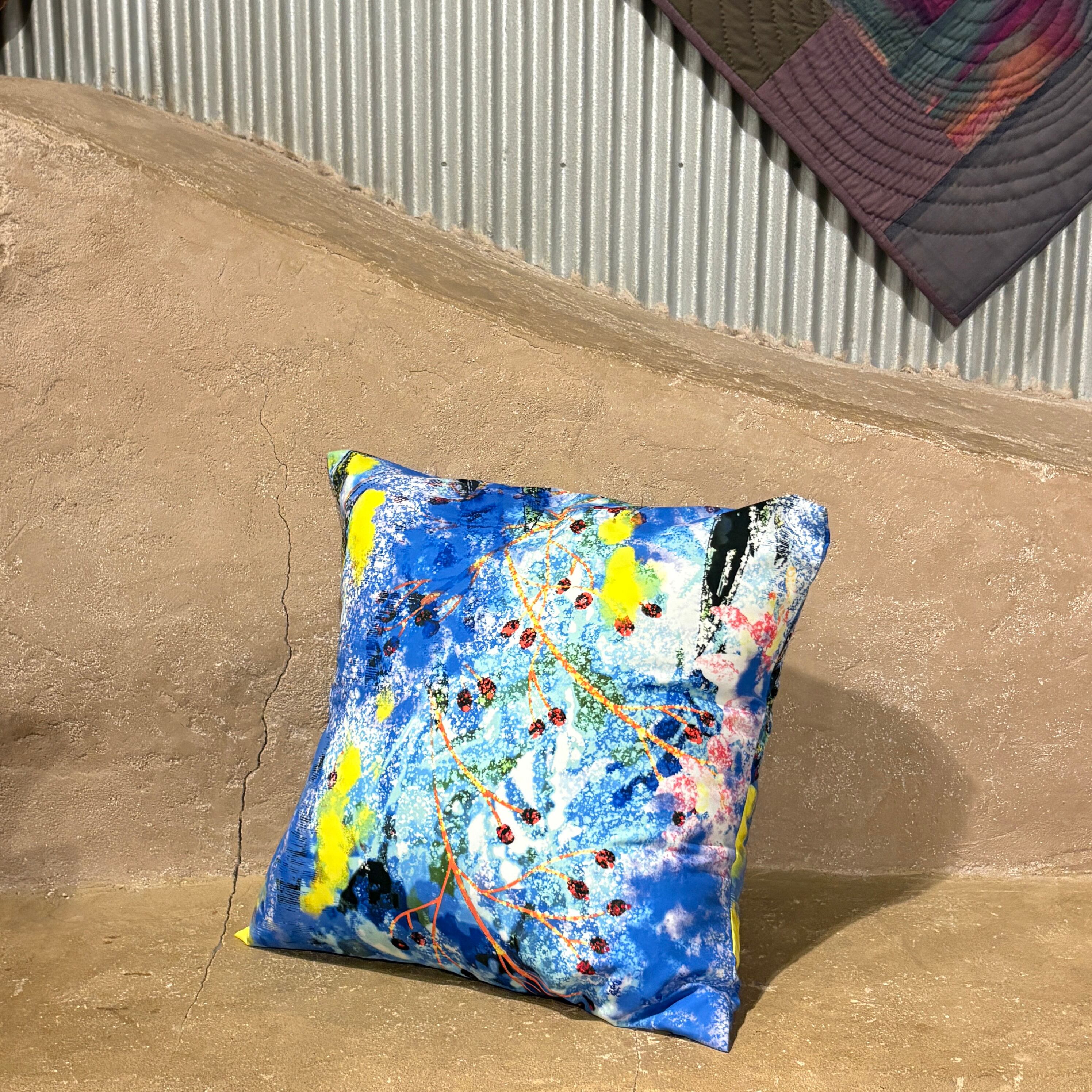 クッションカバー 青のスパイシーフラワー 45cm