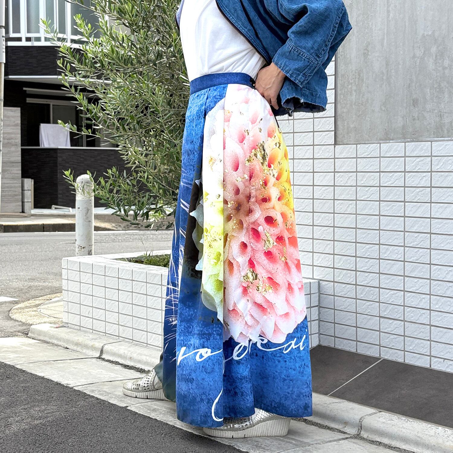 ワイドパンツとしては左右でかなりアンバランスなデザインで、見せる角度により印象が変わるのでコーディネートの遊びの幅を広げます
