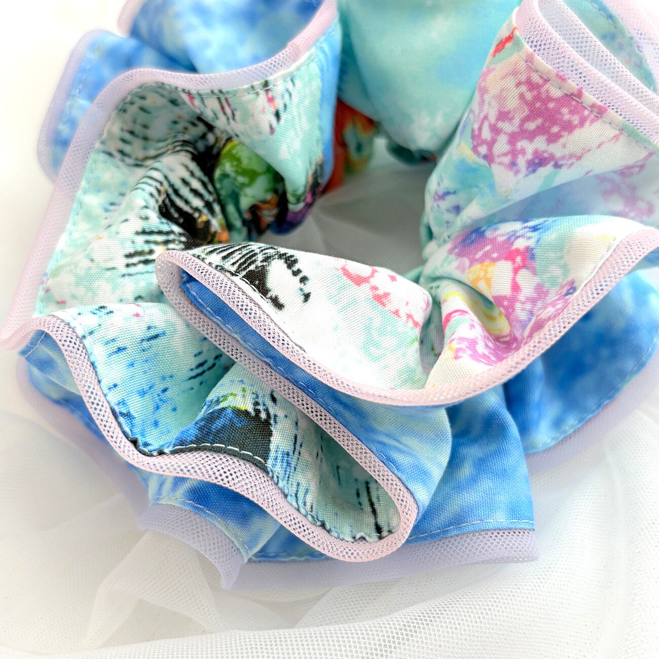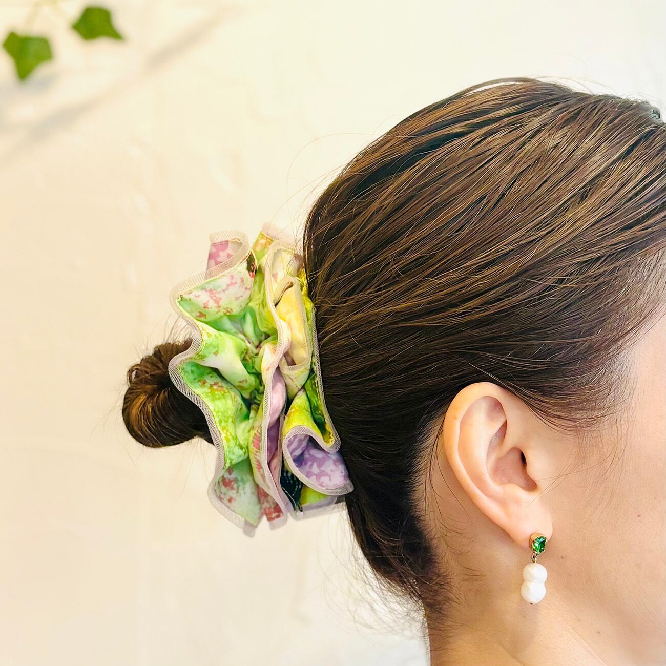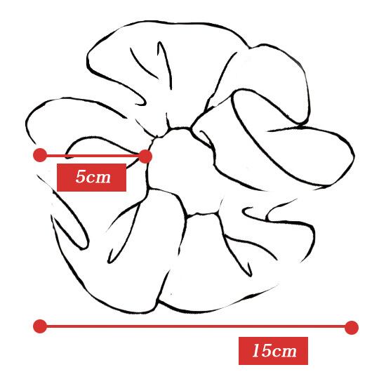ふんわりボリュームがかわいい、2柄ミックスの大きめシュシュ。
