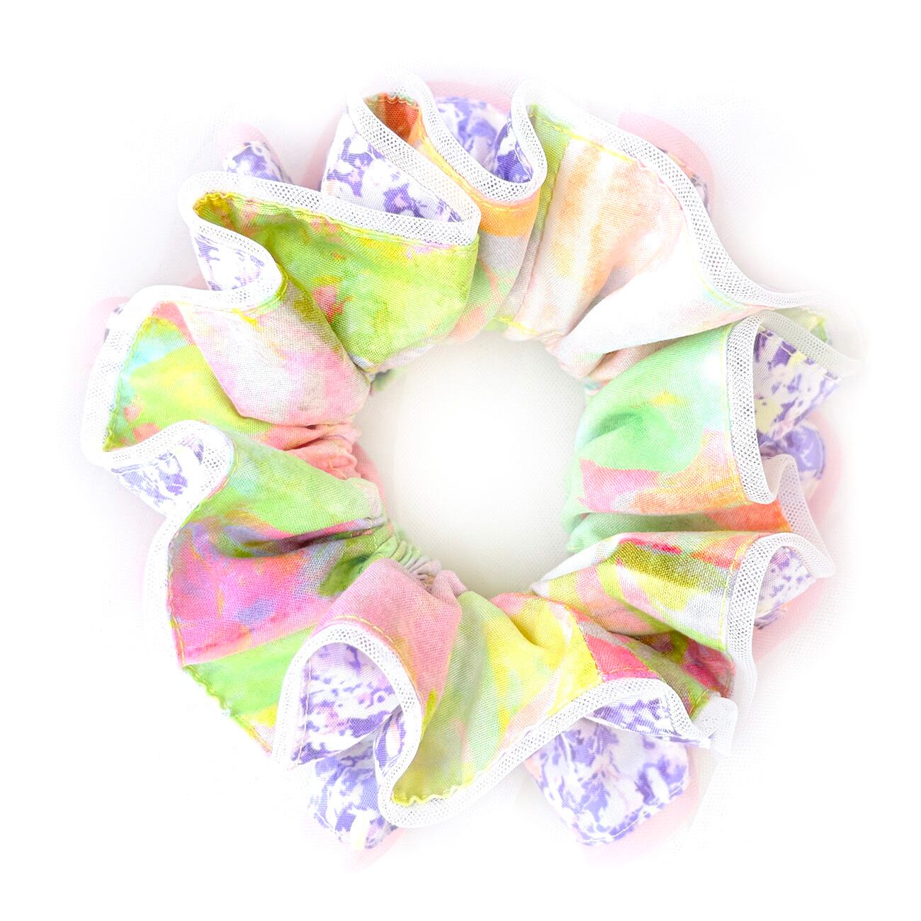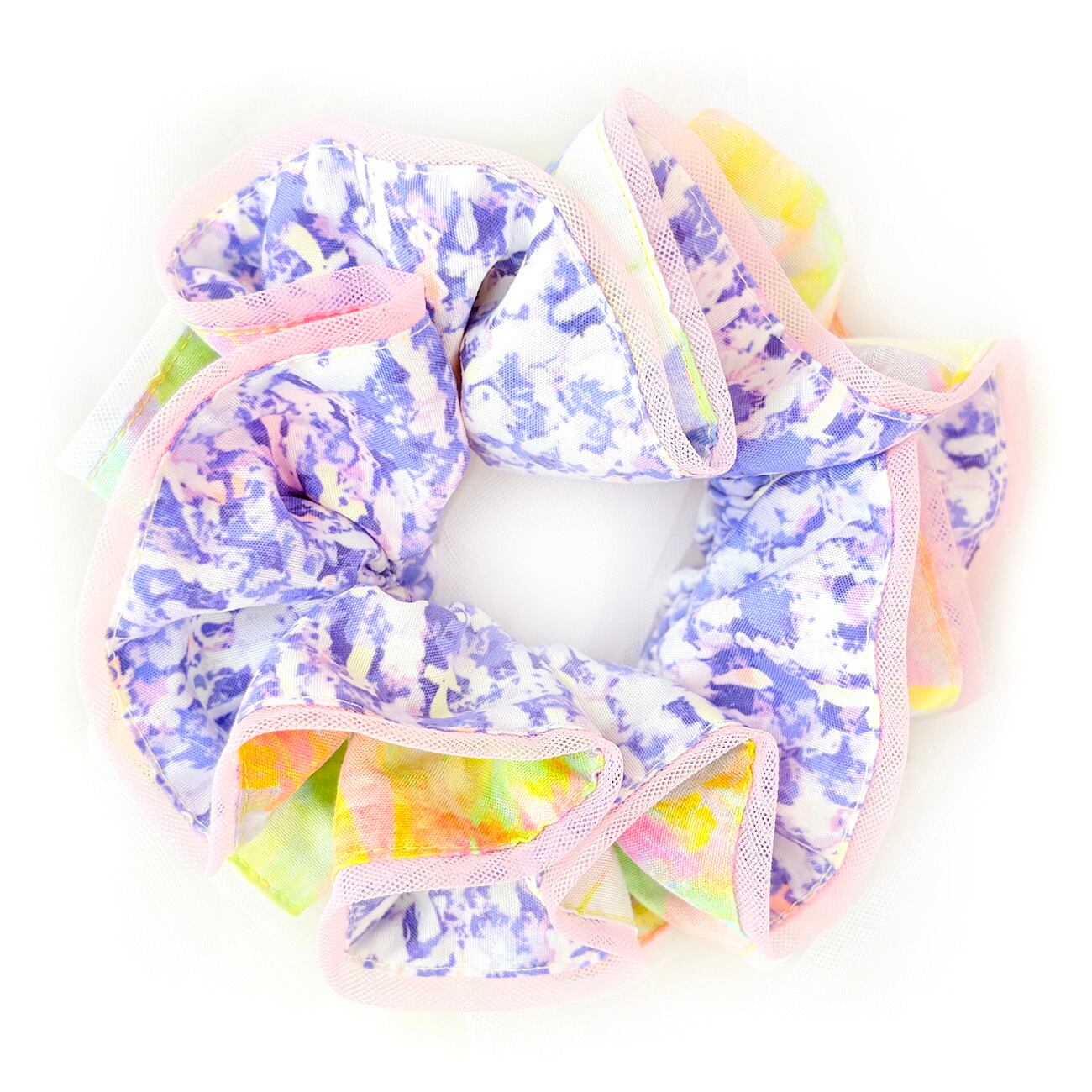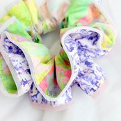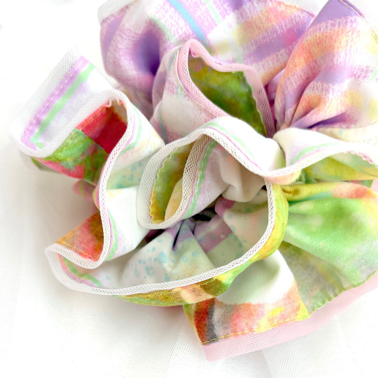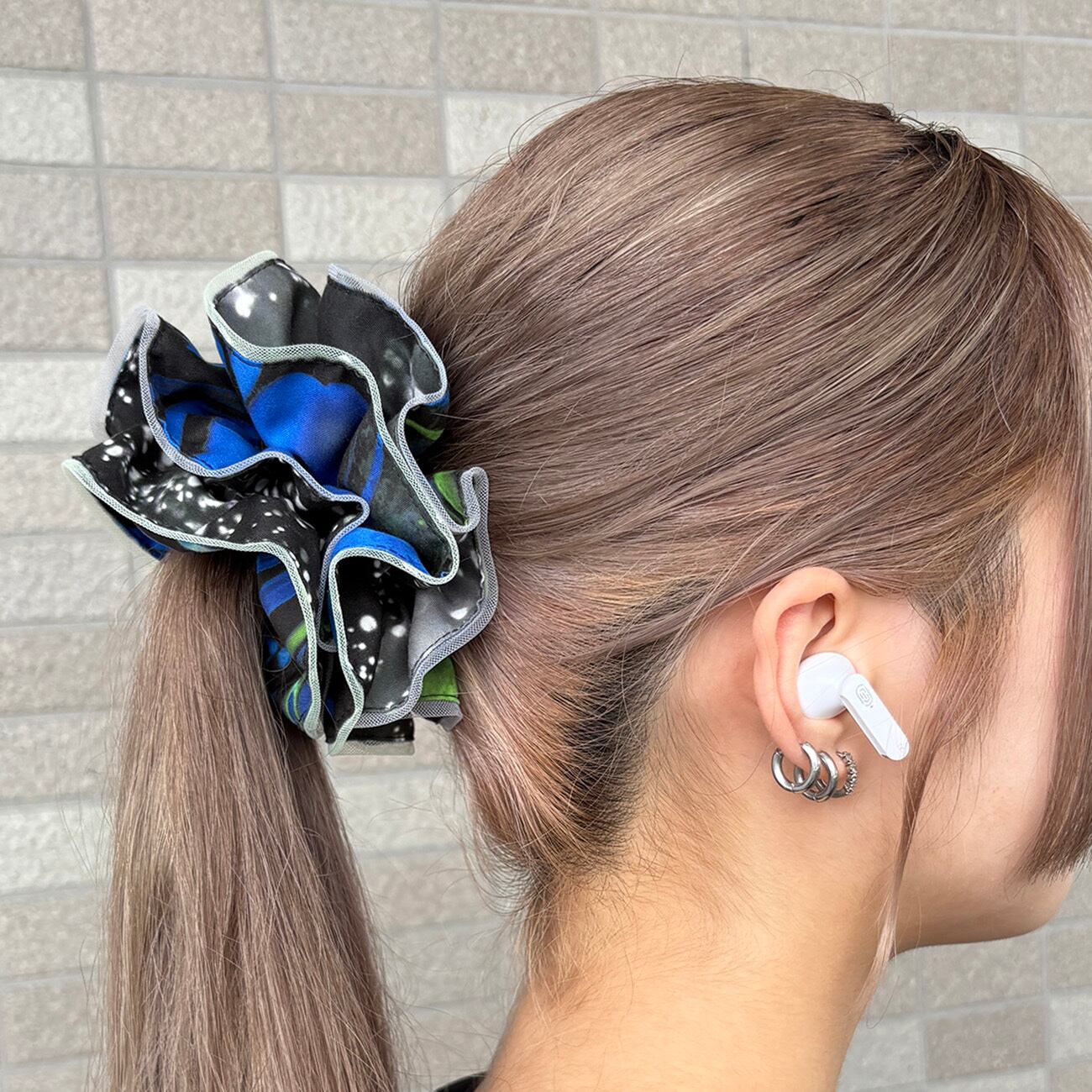 ふんわりボリュームがかわいい、2柄ミックスの大きめシュシュ。