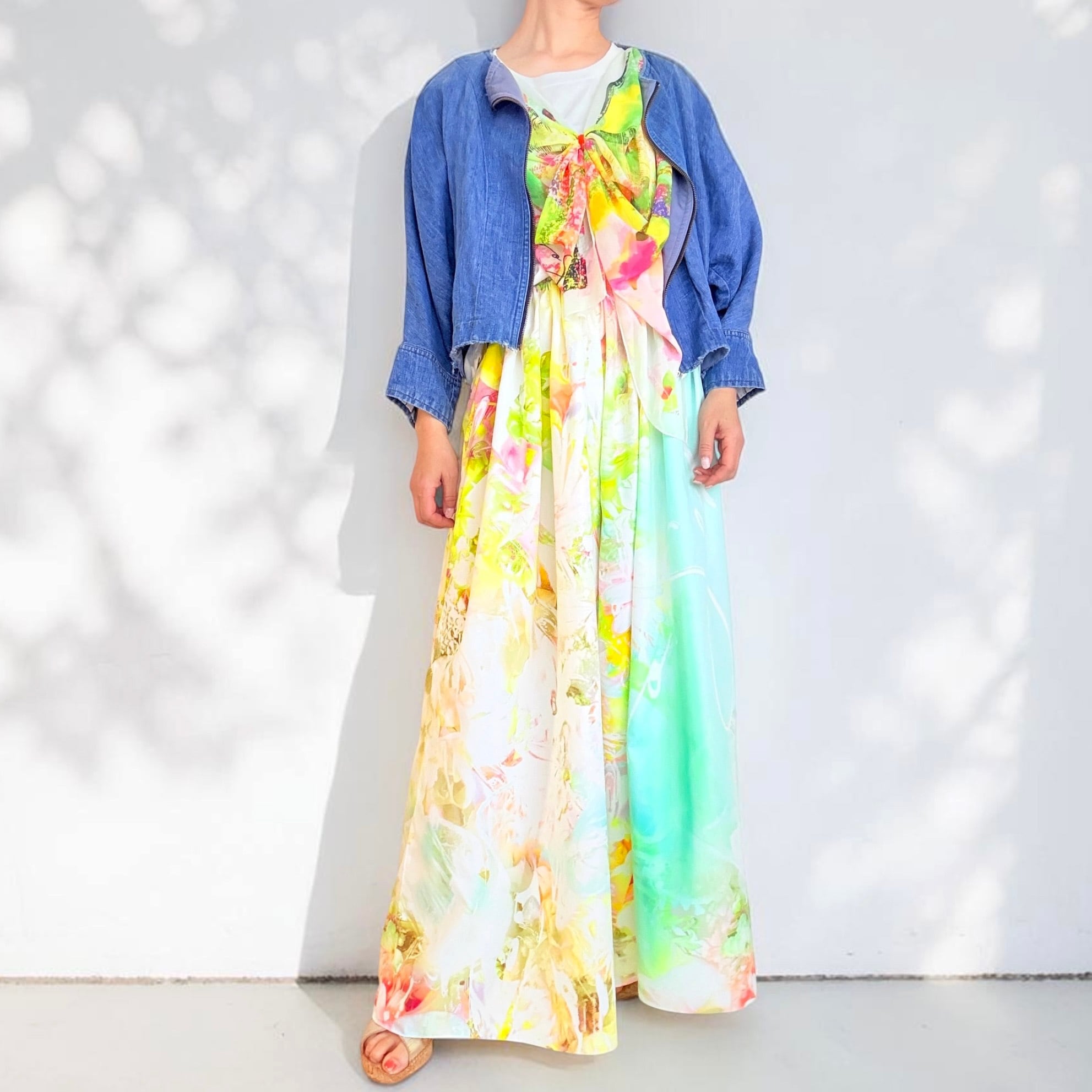 秋や冬はレギンスと合わせる事で一年中楽しめるアイテムです