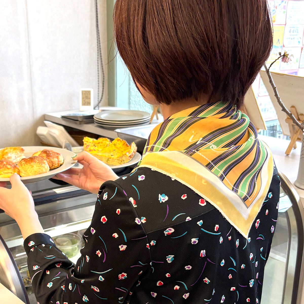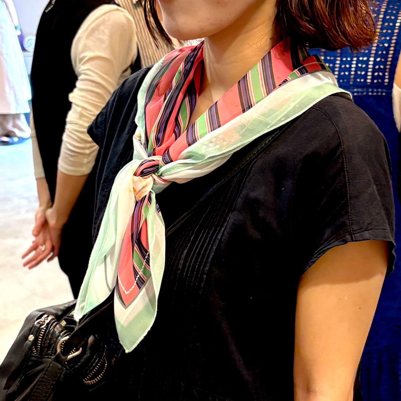 ・カラフルな色、風を纏うような透け感のある素材で、使い方の幅が広がるスカーフ。